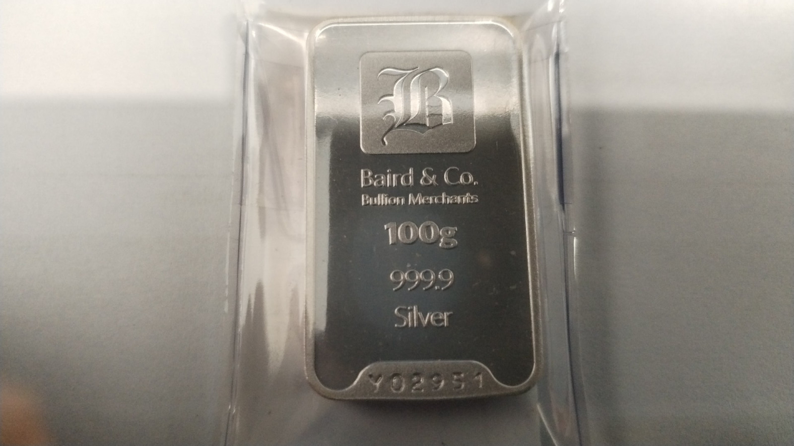 NEW 100g Baird & Co Silver Bullion Bar 999.9 Fine Sealed with COA
